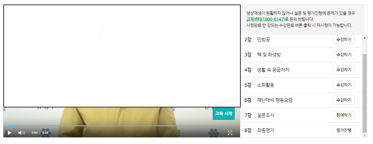해당 지역구의 청장님 훈화 말씀?을 다 듣고 난 후에 교육 시작 버튼을 누르면 본격적인 강의가 시작됩니다.